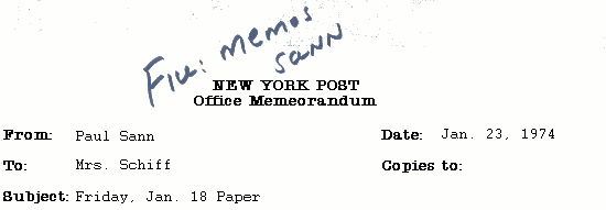 There are glowing exceptions, of course. When you've seen a Kennedy funeral on TV you don't need a newspaper, you've had it. But that's the once in a generation story. Day after day (skipping the Sunday interview shows), it's all split-minute flashes and split-minute quotes. I say it is wrong to give ground before the not-quite-all-seeing camera eye. It is for us to go the other way -- into more reporting, more news, more in-depth, more good writing, more story-behind-the-story. It is for us to furnish what the reader did not really get at all in a WINS news flash or a cue-card TV headline. We're in good shape when the reader can say, "Yeah. I heard it on the air but The Post had the real story on that one." It doesn't happen enough, of course; it is something to strive for. The major effort here should be keyed to that purpose. I say it now just to raise a voice against the concept that says the reader already knows what happened; if he does, we're in bad trouble. If we tell what happened, and the notion gets around that we're telling it, we have a secure future. We need vitality, depth and more depth, in our news columns. I say we need to work toward that goal in 1971; we need to work like hell toward it.